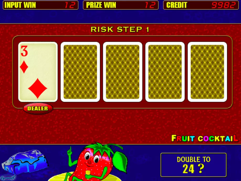 После любого выигрышного спина в слоте Fruit Cocktail игроку предоставляется возможность забрать свой выигрыш или сыграть в риск-игру. Выбрав последнее, они получают шанс удвоить свой выигрыш. Однако, как следует из названия, это сопряжено с риском — в случае проигрыша выигрыш, полученный в предыдущем раунде, аннулируется.